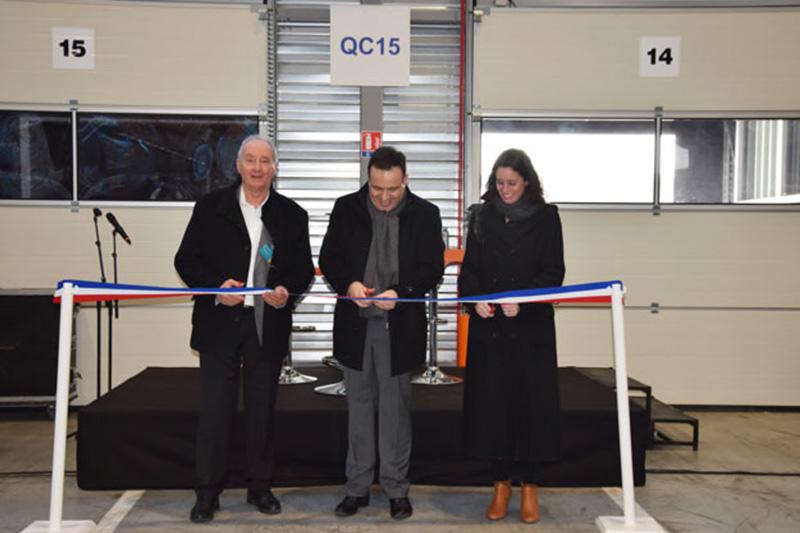 Photo : Inauguration de la plateforme Paredes le 21 janvier 2020, François Thuilleur entouré de Simon et Eva Paredes, administrateurs du groupe. (DR)