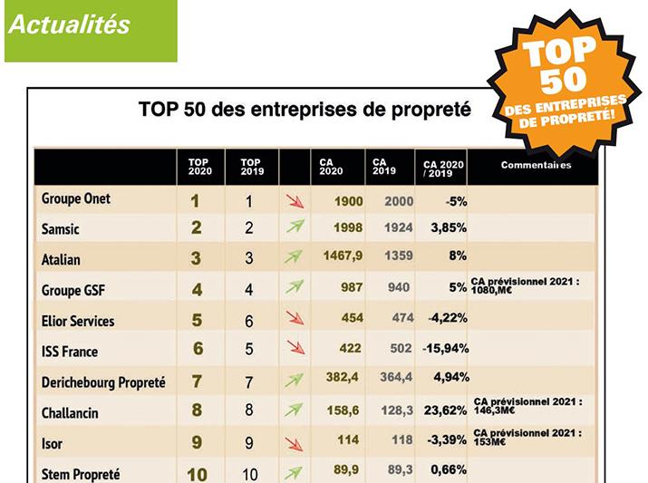 Onet, Samsic, Atalian, GSF...Même si le « TOP 10 » des entreprises de propreté ne connait pas de bouleversement entre l'exercice 2019 et l'exercice 2020, le palmarès des 50 premières sociétés du secteur -que nous réalisons tous les deux ans – est fortement marqué par la crise sanitaire. D'une façon générale 20 entreprises enregistrent une baisse de leur chiffre d'affaires entre 2019 et 2020, contre 4 seulement lors de notre précédent palmarès (janvier 2020). Ces chiffres doivent cependant être considérés avec prudence. Des disparités importantes ont pu se creuser au fil des mois selon l'activité des donneurs d'ordres de chacun des groupes présents ce TOP 50 (hôtellerie, collectivités, industrie, tertiaire...).