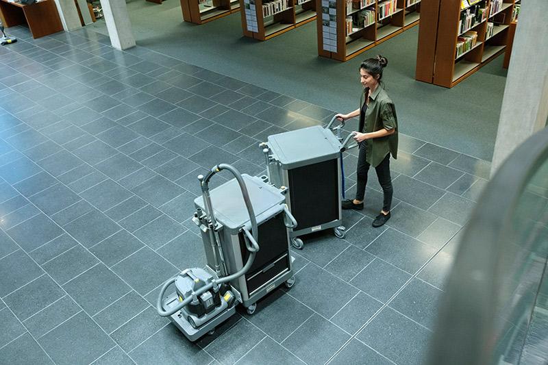 Pour réduire les risques de troubles musculo-squelettiques (T.M.S.), Kärcher a conçu les chariots Flexomate qui réduisent les tensions exercées sur les poignées de 30%, et de 15% sur les épaules. Pensés pour s’ajuster et se moduler selon les besoins, ils optimisent les postures de travail. Leur conception, reposant sur plusieurs fonctionnalités brevetées, simplifie le quotidien des agents de nettoyage et permet de fluidifier chaque étape du processus de nettoyage.