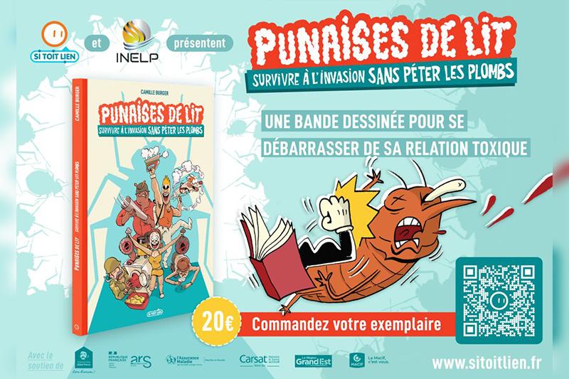 L'association nancéenne,  Si Toit Lien, engagée dans la lutte contre le mal logement et basée à   Vandœuvre-lès-Nancy (54) a choisi la bande dessinée pour communiquer auprès du plus grand nombre et de façon très exhaustive sur les punaises de lit et la façon de s'en débarrasser. Grâce au coup de crayon à l'humour décapant de la dessinatrice Camille Burger – qui a longtemps travaillé pour Fluide glacial- et à l'expertise des meilleurs spécialistes du sujet ( Pascal Delaunay et Jean-Michel Berenger, notamment) cet album devrait s'imposer comme  une mine d'informations de conseils. Intitulée "Punaises de lit : survivre à l'invasion, sans péter les plombs » cette BD tirée à 3 000 exemplaires est en vente sur le site de l'association (20€), et sera distribuée en plusieurs centaines d'exemplaires à des personnes défavorisées et des associations caritatives. Par ailleurs, la totalité du montant des ventes sera employé pour financer des actions solidaires et de lutte contre le mal logement.