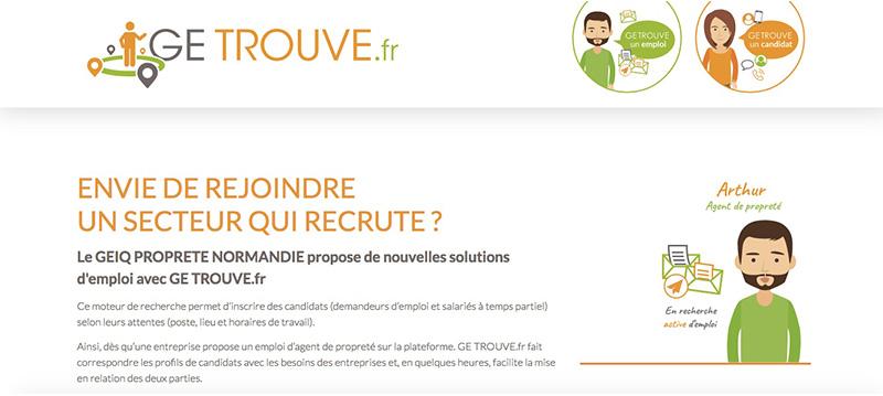 Le Geiq Propreté Normandie propose désormais un outil simple et rapide de mise en relation des entreprises de propreté et des agents à la recherche d'un emploi sur une zone donnée. Cette plateforme, baptisée Getrouve.fr , permet de créer le profil des personnes à la recherche d'un emploi dans la propreté et de le confronter aux besoins ponctuels (ou non) des entreprises. « Nous lançons ce service à une période de l'année où les entreprises de propreté peuvent être à la recherche de renforts saisonniers ou de CCD, voire de CDI. Il ne s'agit pas d'un site classique de recrutement avec un CV mais d'un outil de mise en relation actualisé qui précise la zone géographique du candidat, ses disponibilités et ses possibilités de mobilités. Nous recevons tous les candidats et renseignons les profils. L'entreprise qui recrute, se voit alors proposer des profils compatibles sur l'ensemble de ces critères. Le CV et l'offre d'emploi tendent à devenir obsolètes car l'expérience et les disponibilités et la mobilité du candidat peuvent évoluer en permanence. Il nous fallait trouver d'autres outils » détaille Eric Tencé, le directeur du Geiq Propreté Normandie.
