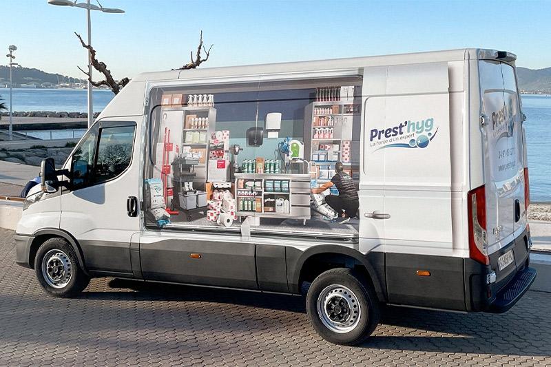 A l'heure du tout numérique, la société marseillaise Prest'Hyg a su trouver un support de communication propre à marquer les esprits et à renouveler les outils habituellement utilisés pour susciter l'attention. « L'idée d'habiller nos véhicules de livraison avec un trompe-l'œil vient de mon fils Rémy qui a rejoint l'entreprise il y a 5 ans et occupe la fonction de directeur marketing et commercial. Mais pour arriver au rendu voulu il a fallu procéder par étape, faire des photos en très haute définition de chaque produit avant de réaliser le montage. Mais le résultat est bluffant. Quand nos livreurs circulent les regards sont immédiatement attirés par l'effet trompe-l'œil, ils ont vraiment l'impression que le camion est ouvert et que le rouleau de papier va tomber ! » s'amuse Joël Grossmann, gérant de la société de Prest'Hyg (3,8M€ de CA).