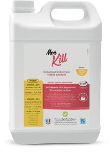 - Meri Kill (TP2-3-4), détergent désinfectant ultra concentré (actif dès 1%) , élimine 99,99% des bactéries, levures et virus sur toutes surfaces.