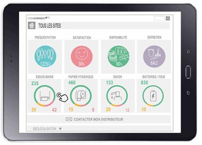 Hygiaconnect qui est le résultat de plusieurs années de R&D et d’une observation précise des habitudes et usages des lieux publics. Ainsi, les nouveaux distributeurs de savon et de consommables sont équipés de capteurs dédiés, alertant en temps réel les équipes sur le niveau du consommable. Les équipes de nettoyage interviennent désormais quand cela est nécessaire et non à horaire fixe. Plus de souplesse, c’est plus d’hygiène pour l’usager et plus de confort de travail pour les équipes.