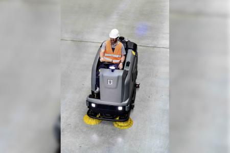 Équipée d’une cuve de 260 litres, d’une double turbine et d’une unité de balayage de 60 litres en option, elle conjugue performance de nettoyage et rendement élevé. La B 260 RI affiche une autonomie de travail allant jusqu’à 6 heures et une vitesse de travail de 10 km/h. Très résistante aux chocs grâce notamment à ses pare-chocs avant et arrière, elle joue la carte de la sécurité avec son capteur gyroscopique qui permet d’abaisser la vitesse de l’autolaveuse dans les virages. Le mode eco!efficicency et le système Dose de réglage de détergent contribuent à une parfaite maîtrise de la consommation de détergent et d’énergie. Simple d’entretien, l’autolaveuse autoportée B260 RI se distingue par son poste de conduite ergonomique et intuitif.