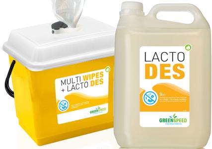 Greenspeed vient de lancer un kit pour la préparation des lingettes désinfectantes basé sur Lacto Des, un désinfectant prêt à l’emploi d’origine végétale à base d'acide lactique. Le kit contient un seau avec couvercle hermétique, une mesurette, 3 rouleaux de Multi Wipes (250 feuilles) et un bidon de 5 l de Lacto Des. Le kit est facile à recharger avec le kit de recharge. Le désinfectant élimine les risques et augmente l'efficacité tout en respectant l'environnement. Le Lacto Des est biodégradable et exempt de symboles de risques. Ce qui veut dire qu'il peut être utilisé en toute sécurité. Il ne contient ni ammonium quaternaire, ni chlorure de benzalkonium ni dedecyldimonium chlorides.