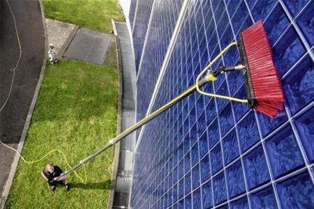 La solution Kärcher dispose d’atouts inestimables. Dotées d'une portée de 7, 10 ou 14 mètres, les perches télescopiques en fibre de verre, hybrides ou en carbone repoussent les limites des possibilités d'utilisation. Légères et rigides, elles permettent une variété d'applications, du nettoyage des façades ou des sols à celui des panneaux solaires et sont tout aussi efficaces pour les travaux à haute, moyenne ou basse pression que pour des tâches comme l'aspiration en hauteur.