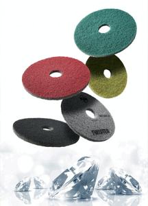 Les différentes couleurs de disques définissent la taille et/ou mélange des diamants. En utilisant uniquement les quatre couleurs en séquence – rouge, blanc, jaune, verre – cela va vous permettre de rajeunir et transformer les sols en pierre anciennes, ternes et usés avec des résultats propres, uniformes, brillants et polis.